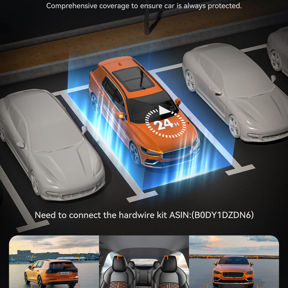 - [Fast 5.8GHz WiFi, GPS and 24-Hour Parking Monitor] The WOLFBOX X5 dash cam for car front and rear inside offers fast 5.8GHz WiFi for quick video transfer via app. GPS records routes and speed.With 24/7 parking mode, including time-lapse and impact detection, it protects your vehicle day and night. Comes with a 128GB SD card (supports up to 512GB), providing ample storage space for your journeys.Parking monitor requires a hardwire kit (ASIN: B0DY1DZDN6, sold separately).