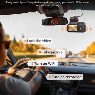 - [Smart Voice Commands and Intuitive Touchscreen Control] Operate your triple channel dash cam hands-free using 12 smart voice commands such as "take picture," "turn Wi-Fi on/off," "lock video," and "show front/rear camera." The responsive touchscreen provides quick access to all features, making this WiFi dash cam user-friendly and ideal for distraction-free driving.