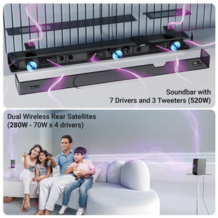 - DUAL REAR SATELLITES: Offers immersive audio with dual wireless rear satellites producing 70W x 4 output from each driver.